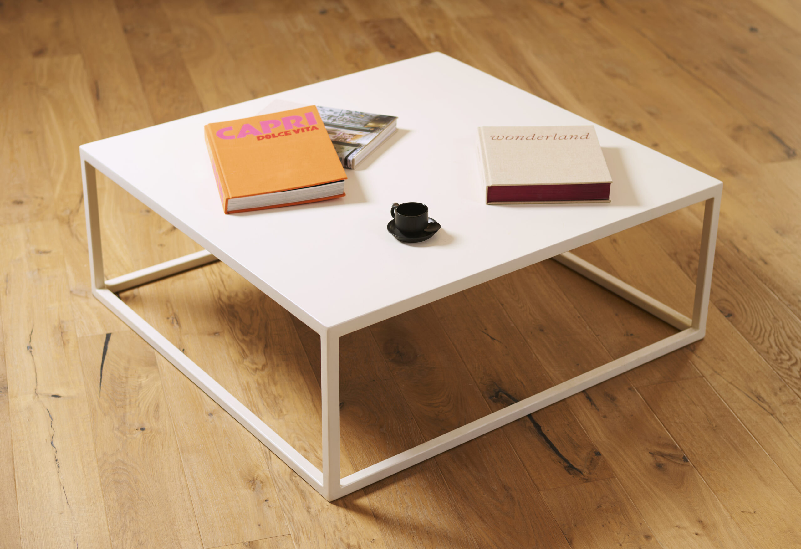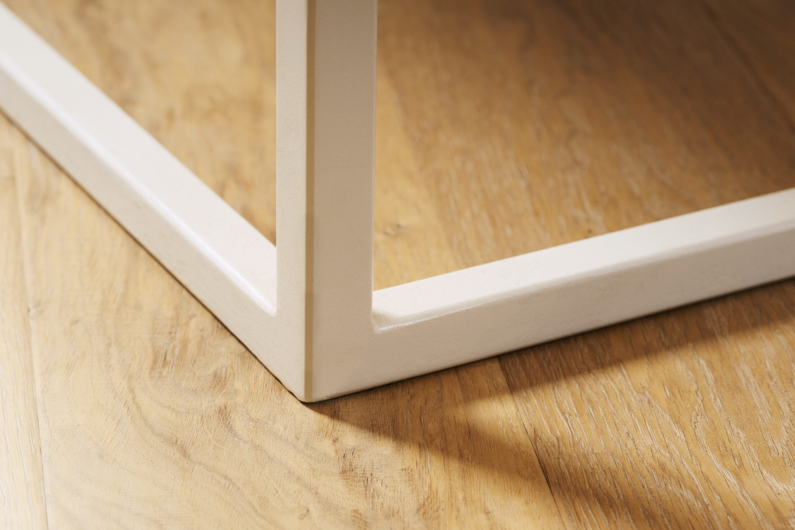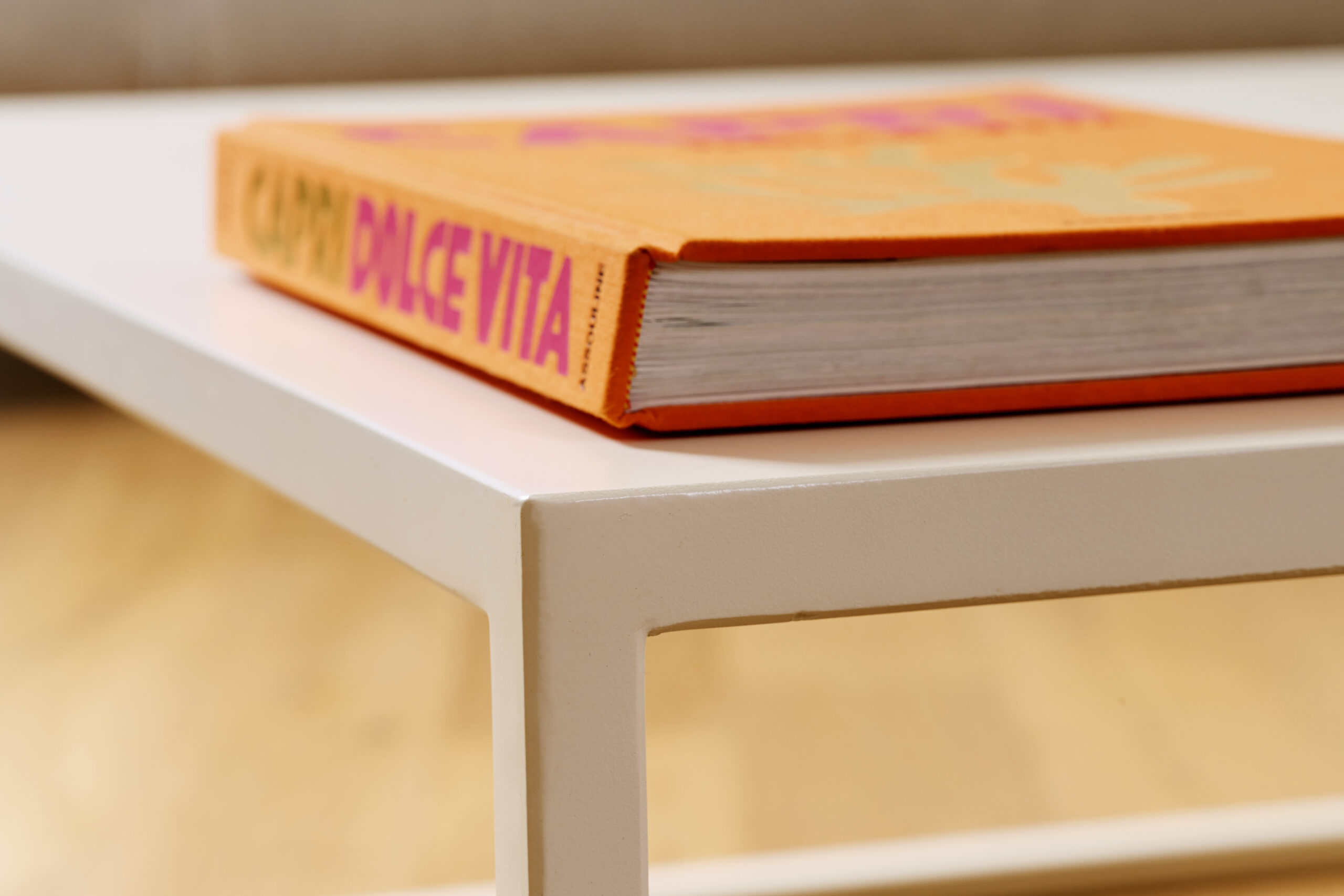 Un pezzo unico in ferro, con struttura e piano fusi in una linea continua. Il design essenziale e il colore creano un equilibrio perfetto tra solidità e leggerezza.