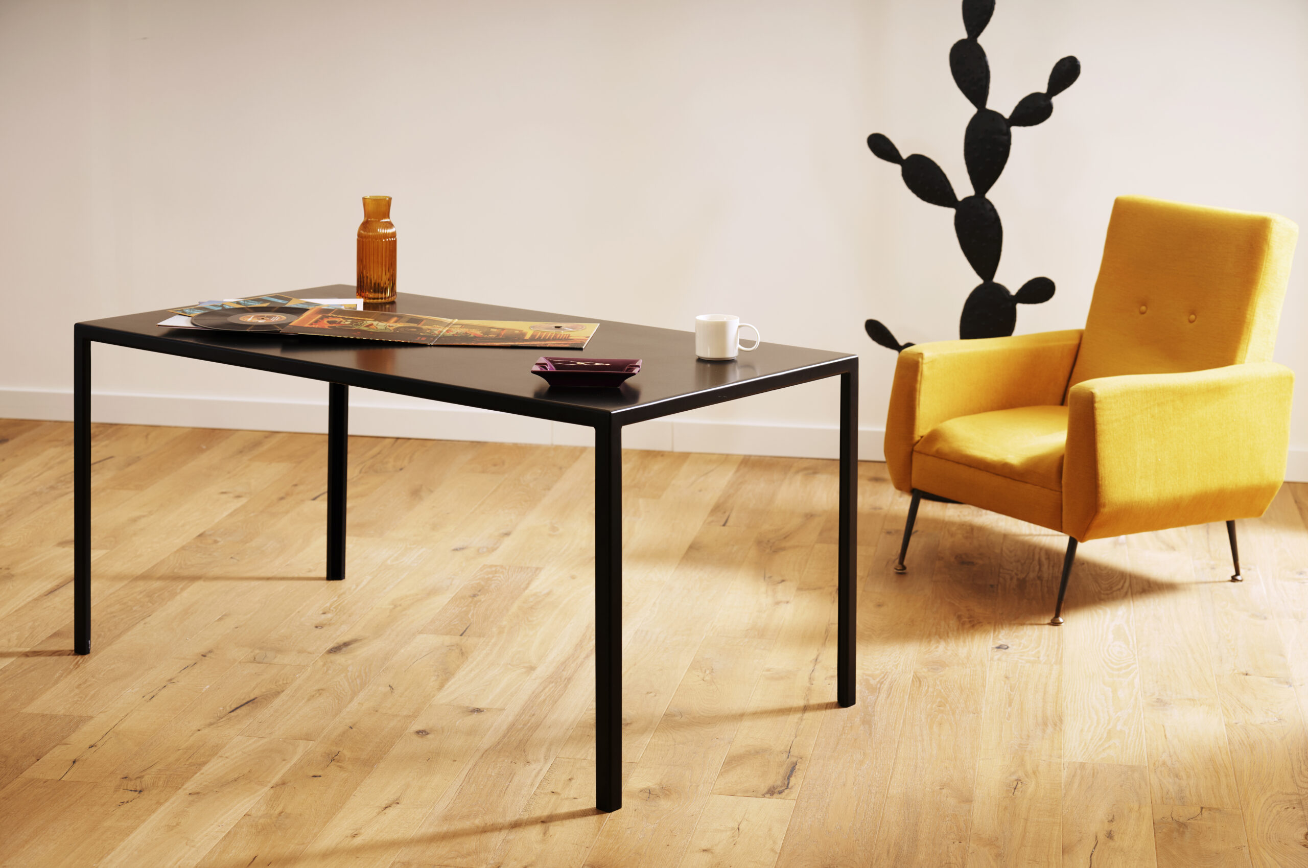 Una combinazione sorprendente di robustezza e leggerezza, realizzata in un unico elemento di ferro. L’accostamento con la vivacità del colore crea un prodotto estremamente versatile.